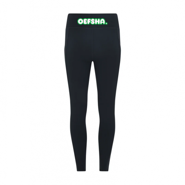 Seamless black sports leggings with the Oefsha logo